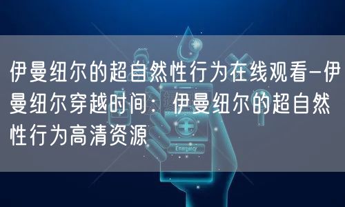 在这里,我们提醒您,尊重知识产权和版权法律法规,合法观看和分享视频资源。让我们共同探索伊曼纽尔的超自然世界,感受他所带来的神秘与震撼。
