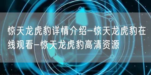 惊天龙虎豹:一部令人热血沸腾的动作巨片,让你一睹龙虎豹的震撼力量。这部电影以其惊心动魄的冒险故事和精彩的打斗场面赢得了广大观众的喜爱。接下来,让我们一起深入了解这部电影,并在线观看高清资源。