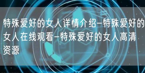 《特殊爱好的女人》是一部围绕女性特殊爱好展开的剧情片。影片中的女主角拥有与众不同的爱好,这一爱好在周围人眼中或许是特殊的,但对她而言却是生活中不可或缺的一部分。影片通过讲述女主角的生活经历,展现了她如何面对外界质疑、坚持自我爱好的过程。