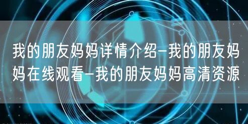 总之,《我的朋友妈妈》是一部值得一看的电影。无论你是想要了解电影剧情,还是想要在线观看高清资源,都可以找到相关的资源。希望你在观影过程中,能够感受到这部电影所传递的深刻情感。