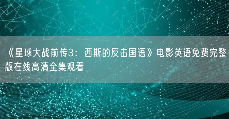 观看方式非常简单,你只需通过搜索引擎或者电影网站,输入“《星球大战前传3:西斯的反击国语 英语免费完整版 在线高清全集观看”,就能找到相关资源。这些资源都是经过精心筛选的,保证画面清晰、音质优良,让你享受到最佳的观影体验。