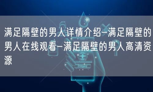 本文为您介绍一部备受关注的热门电视剧——满足隔壁的男人。我们将为您提供详尽的剧情介绍,以及在线观看和高清资源的相关信息。让我们一起了解这部引人入胜的作品吧。