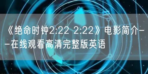 《绝命时钟2:22》是一部集悬疑、惊悚、科幻于一体的电影,凭借其紧张刺激的剧情和深刻的故事内涵,吸引了众多观众的关注。本文将为大家介绍这部电影的背景、剧情简介以及在线观看高清完整版的方法。
