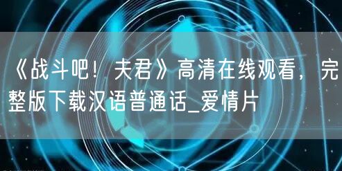 《战斗吧!夫君》是一部不容错过的精彩爱情片。无论是高清在线观看还是完整版下载,都能让你感受到这部电影的魅力。快来加入我们,一起感受这场浪漫的爱情之旅吧!